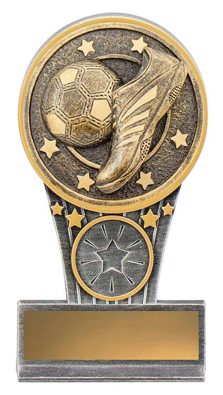 An elegant design that is still an affordable option – in 2 sizes – Back of the Net soccer trophies is a smart choice for bulk and participation football orders.