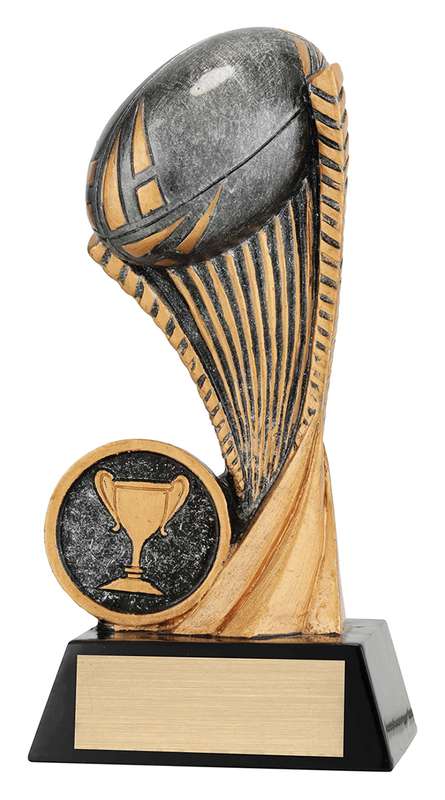 Pair of popular silver theme style trophies for Rugby League & Union. The shield & star inspired design frames the iconic boot and ball combination. Space for 25mm insert if required.