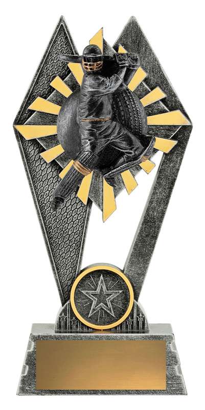 Popular mini trophy theme in 2 sizes ideal for participation awards. Design features key cricket elements and includes the option of customisation if required.