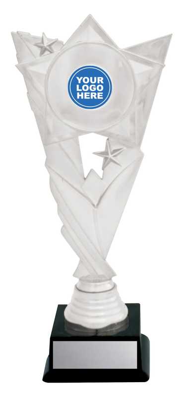 Cosmic series of affordable trophies feature star spangled holder in gold or silver – choose colour of column to suit your order. Suit 25 or 50mm centre insert.