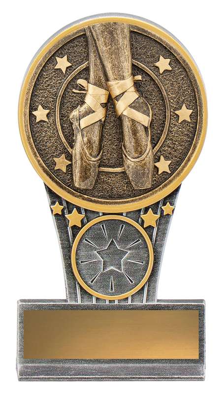 The Rising Star design features iconic dance elements and provides a versatile trophy top for dance requirements. Wide range of complimentary base and riser options to consider when building your multi-part trophies.