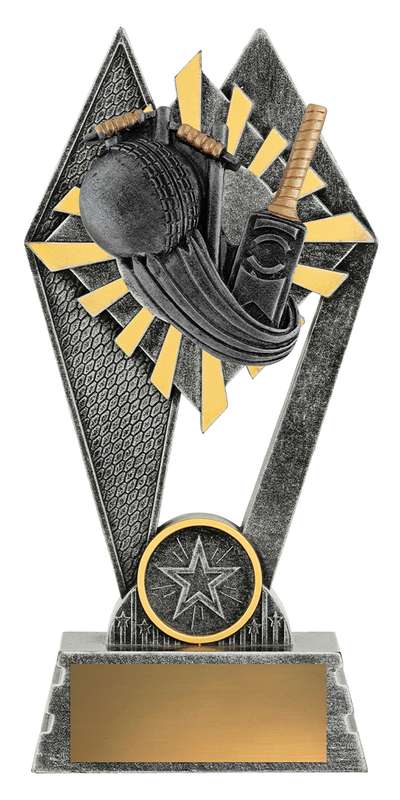 Substantial timber double wing trophies for cricket to award top performers. Multi part trophies adaptable to any sport, select the trophy figurine to represent your activity.
