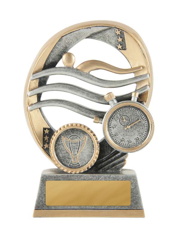 Swimming top features female swimmer and is finished in traditional, bright gold. Male and female figures available. View bases and column options in the range to complete your selection.