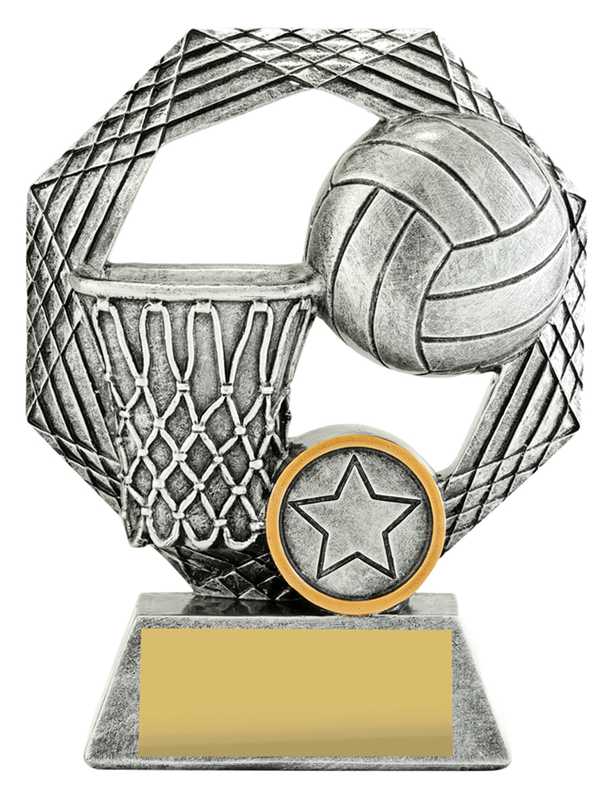 Dynamic netball trophies perfect for players of all ages in your club. These ‘Flag’ netball trophies feature a stylish star based design with iconic ball & net elements.