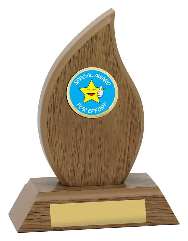 Wood flame award presents a smart trophy option for your recipients. Choose from the various activity inserts to best represent your event or competition.