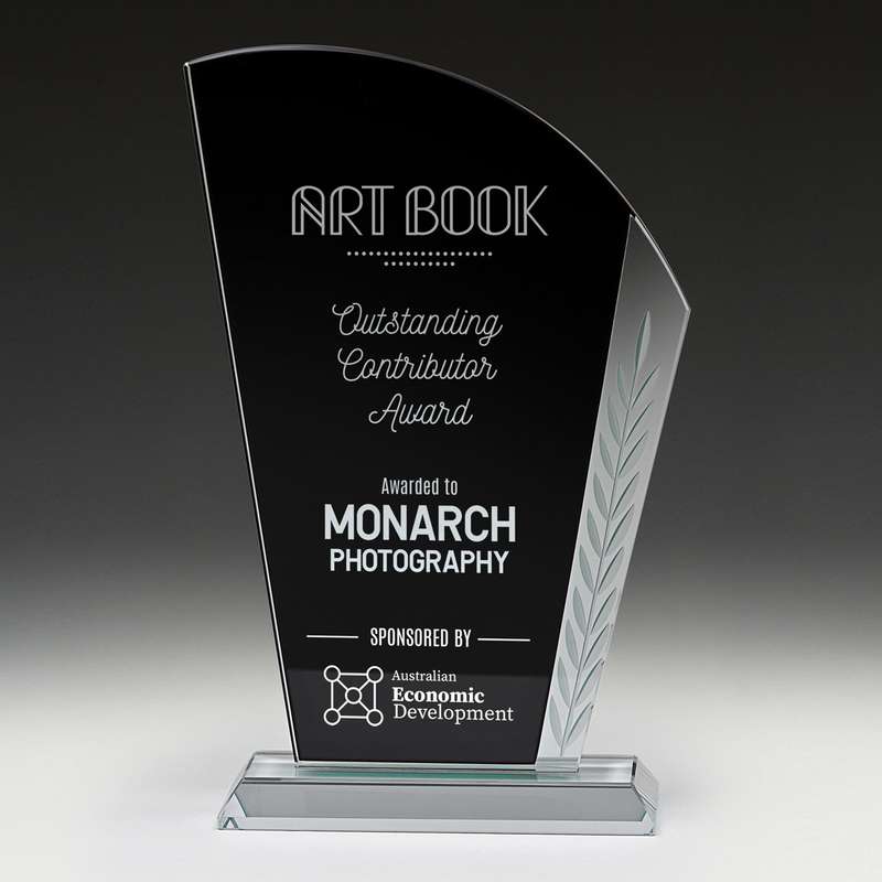 Affordable glass trophies in multiple sizes feature metal base to elevate the design of this award.
