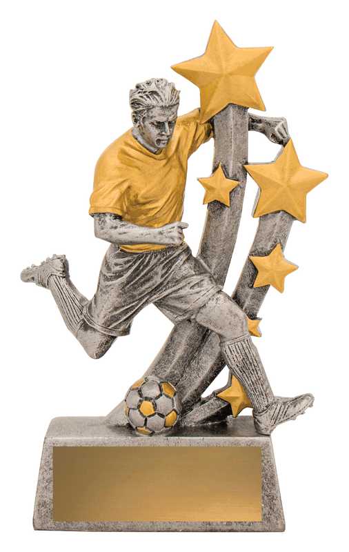 Elegant trophies feature distinctive football design in antique silver and gold colour combination. Trophies represent a budget option and are available in 3 convenient sizes.