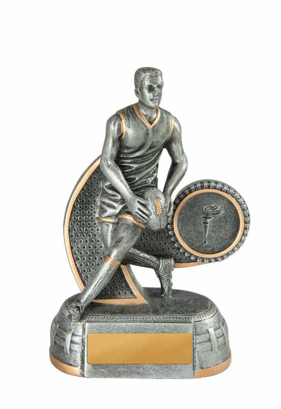 Classic series of column trophies available in different colours. Choose top for sport or activity. Aussie Rules series offers prominent space for your custom logo.