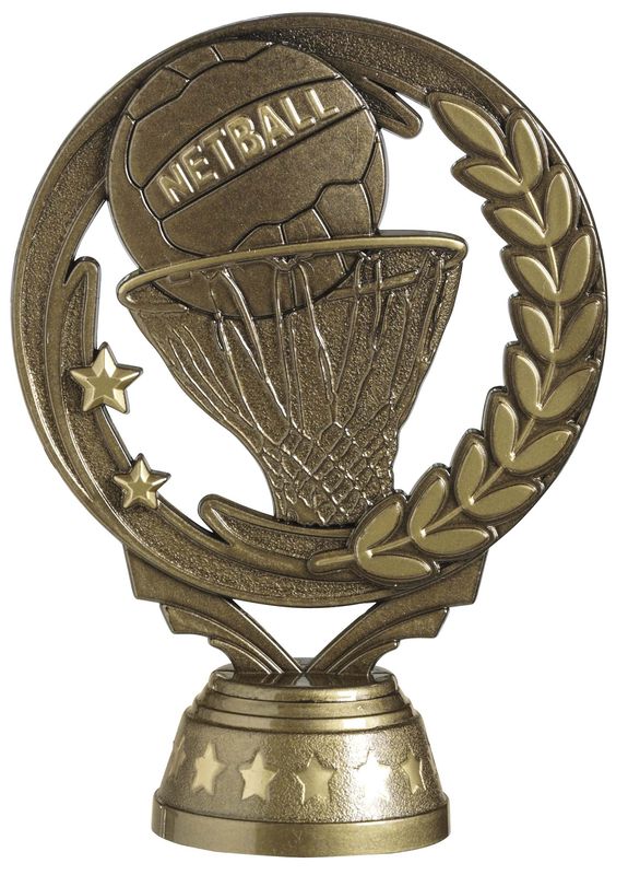 Classic shiny gold trophy top featuring netball player in action on premium black marble base.