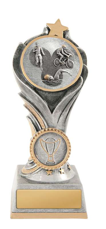 Dynamic design of holder trophies rendered in antique gold colours – male or female available.