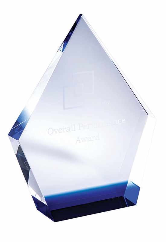 Premium award, heavyweight black and clear crystal in a timber gift box