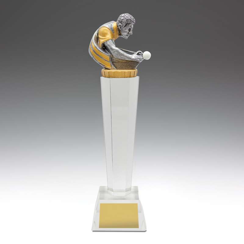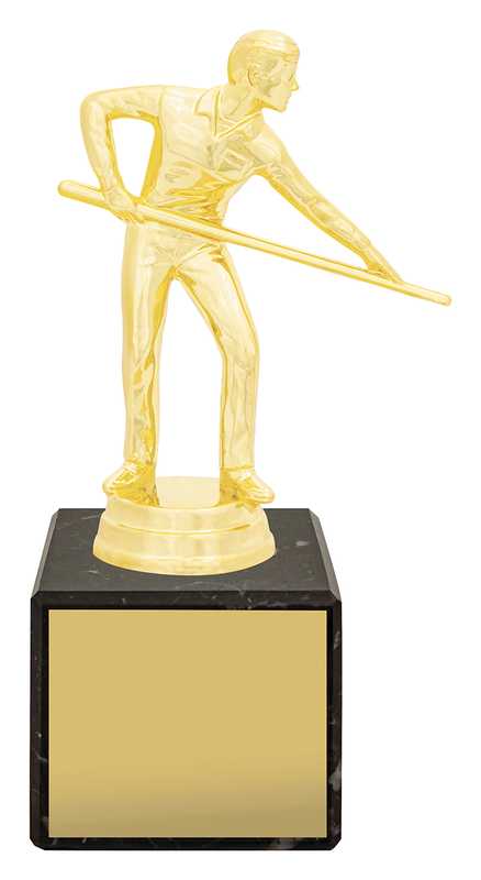 Versatile trophy figure – for Pool, Snooker, Billiards – finished in bright gold and use to build your multi-part trophy. Browse complete range of tops and figures for your sport or activity. Complimentary trophy bases and risers available to suit your requirements.
