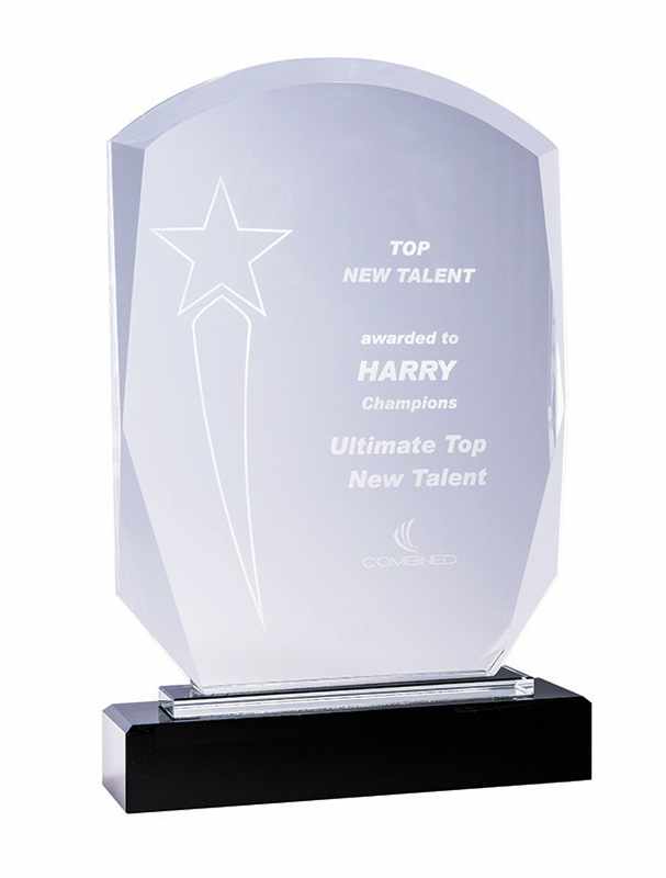 Simple but effective series of trophies for your presentation – bright gold top representing your activity on series of prestige European marble. Ample space for personalisation.
