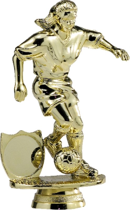 Mini player top in bright gold for soccer trophies. Male and female figures available. Plenty of base and riser / column options available to complete your award selection.