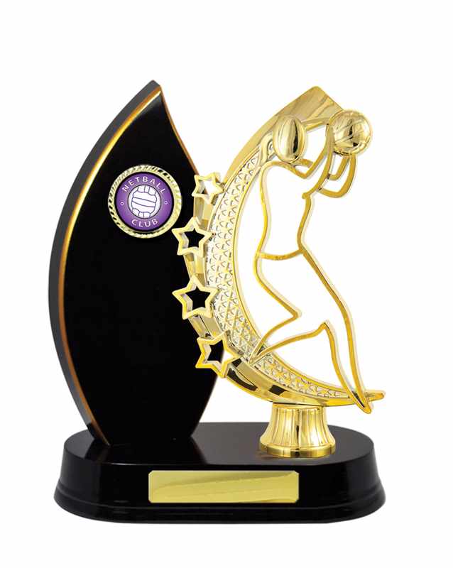 Affordable Netball trophy series in 3 sizes in classic antique silver and gold colours. A star inspired design featuring classic combination of ball & net. A fantastic trophy idea for all ages, starting at a budget price point with the space for potential club logo if required.