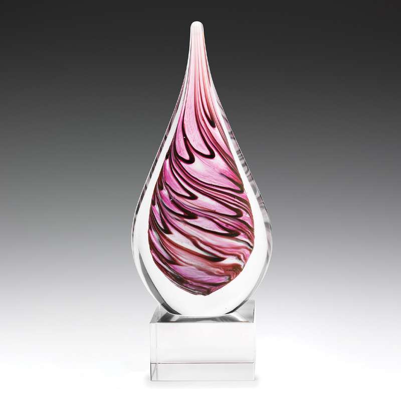 Stunning award, the Origin features unique swirling red & clear pattern encased in crystal dome.