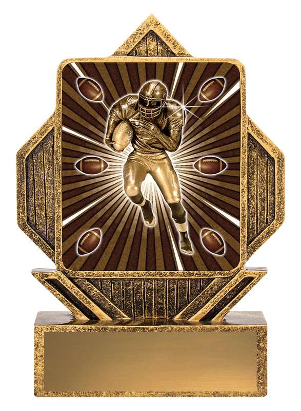 The Peak Series is an innovative set of trophies offering super value for such an impressive size range. An elevated design that showcases the American Football against vibrant sunray background. Available in 3 sizes.