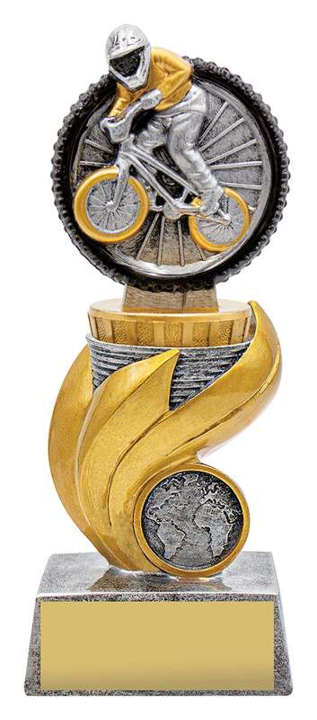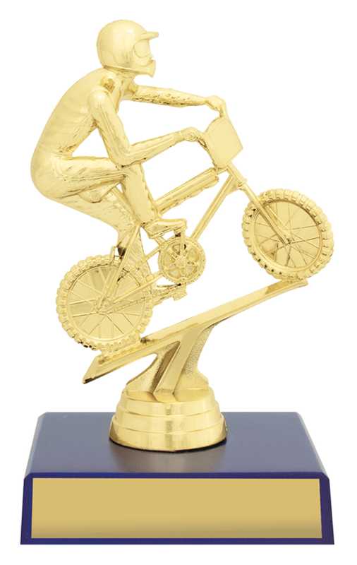 Exciting design of acrylic trophy showcases the gold theme for your sport or trophy. An affordable award with terrific space for your engraving.