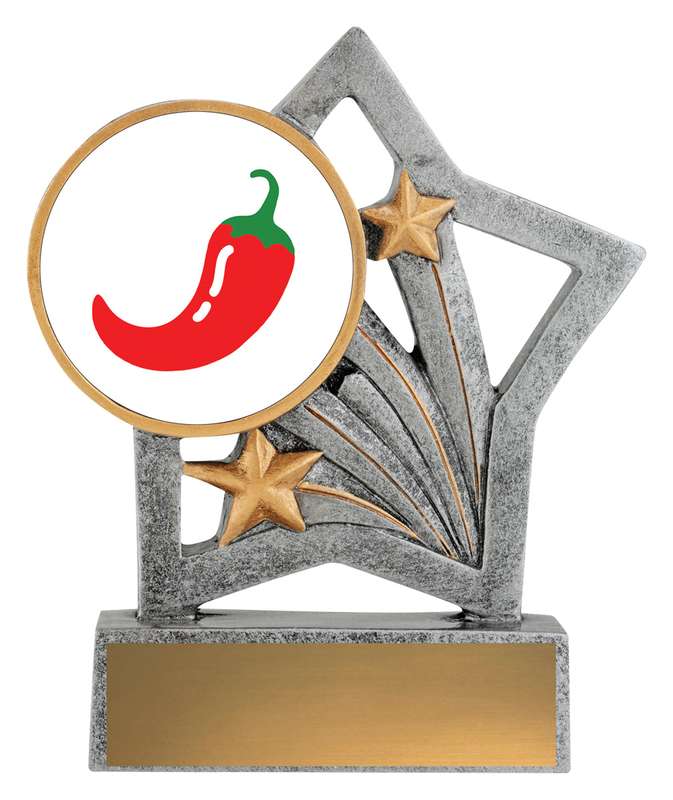 Exciting design of acrylic trophy showcases the gold theme for your sport or trophy. An affordable award with terrific space for your engraving.