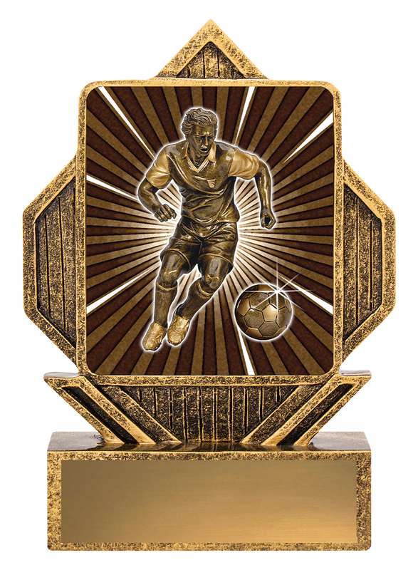 Dynamic design of theme trophy, Football Spinifex showcases bold design elements and offers option to include your custom logo.