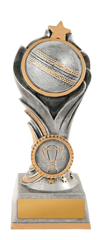 Brilliant series of gold trophies for cricket with lightning bolt features and elements for your sport. Central space for logo.
