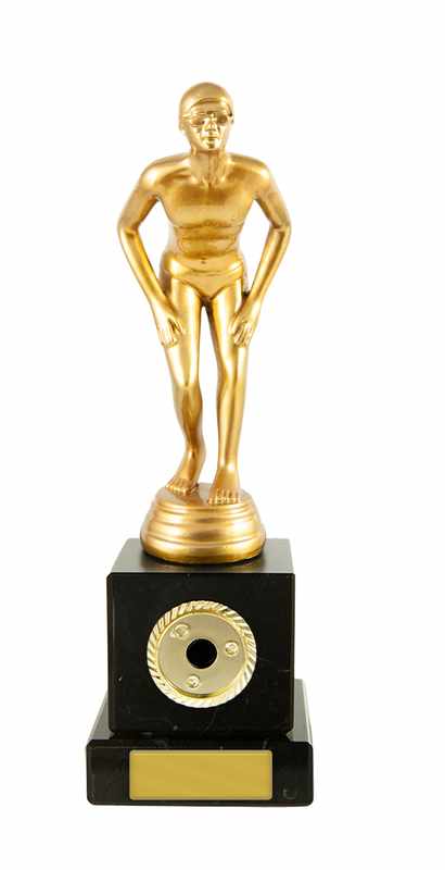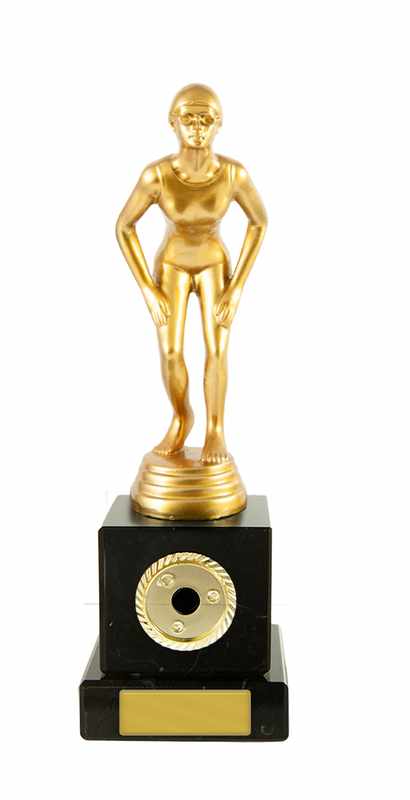 Range of FastFix trophy parts allow for easy to use and affordable trophies. Swim top features a swimmer in action against stop-watch background.