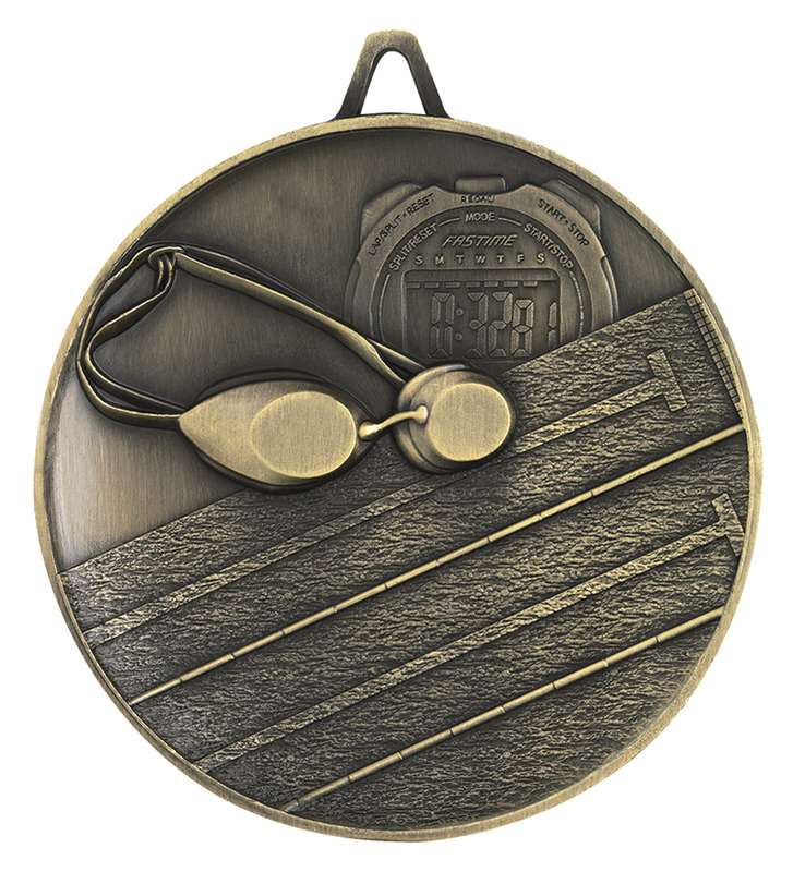 Galaxy Medals present a larger size of medal for Swimming events with effective star design and is suitable for budget requirements. Available in gold, silver and bronze and ribbons and medal boxes to suit.