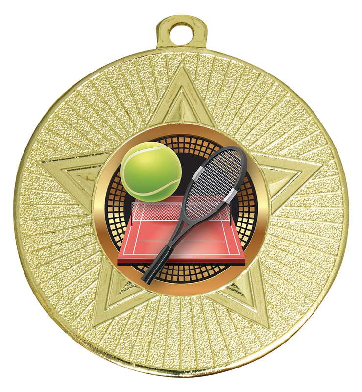 Medals designed for Tennis with elegant arrangement of racquet and ball. The Vortex Medal series is an innovative design featuring bright elements on an antique vortex whirl design. Back of the medal includes a rectangle panel for your engraving. Special medal boxes available for this uniquely shaped medal.
