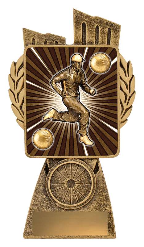Zoom series of Cricket trophies celebrates iconic elements of the sport over multiple sizes – ideal for both participation awards and best playing awards.