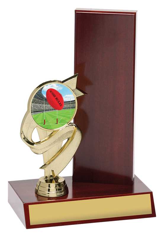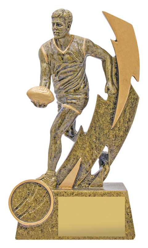 Zoom series of aussie rules trophies celebrates iconic elements of the sport over multiple sizes – ideal for both participation awards and best playing awards.